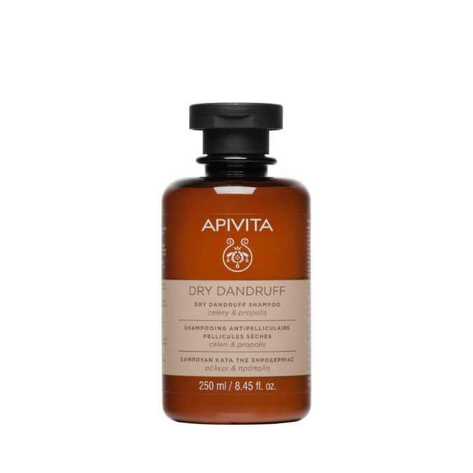 Apivita Dry Dandruff Shampoo Celery & Propolis është një shampo e formuluar për skalpin me zbokth të thatë, që ndihmon në balancimin e