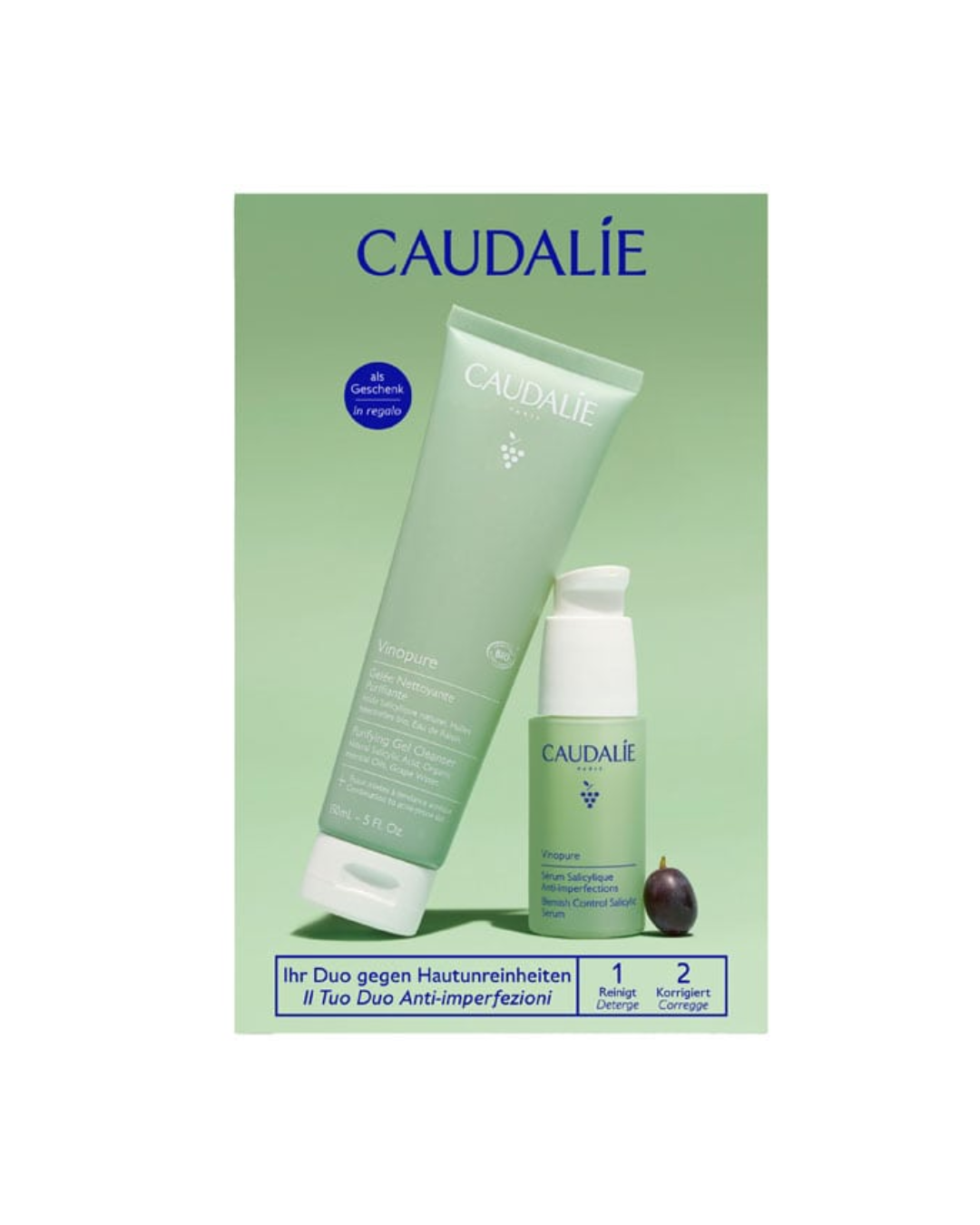 Caudalie Vinopure Blemish Control Salicylic Serum Ingredients: AQUA/WATER/EAU, ROSA DAMASCENA FLOWER WATER, ALCOHOL, NIACINAMIDE, BUTYLENE GLYCOL, PALMITOYL GRAPE SEED EXTRACT, XANTHAN GUM, SALICYLIC ACID, SODIUM HYALURONATE, TOCOPHEROL, PELARGONIUM GRAVEOLENS FLOWER OIL, SODIUM HYDROXIDE, MENTHA PIPERITA (PEPPERMINT) OIL, CITRAL, CYMBOPOGON CITRATUS LEAF OIL, ROSMARINUS OFFICINALIS (ROSEMARY) LEAF OIL, CITRONELLOL, GERANIOL, SODIUM PHYTATE, LINALOOL, LAVANDULA HYBRIDA OIL, MELISSA OFFICINALIS LEAF OIL, LIMONENE.