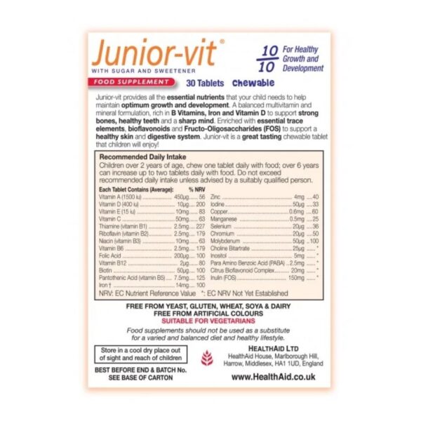 Tabletat HealthAid JuniorVit mund të jenë të dobishme për: