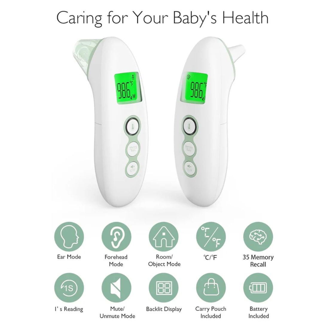 Siguroni lexime të sakta dhe pa stres të temperaturës me termometrin pa kontakt për ballë dhe vesh, i projektuar nga Momcozy duke pasur parasysh nënat.