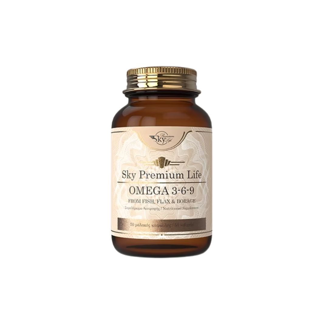 Omega 3-6-9 nga Sky Premium Life® është një burim shumë i mirë i acideve yndyrore të nxjerra nga vaji i peshkut (Ω3), farat e lirit (Ω3 dhe Ω6) dhe lulediellit (Ω6 dhe Ω9).