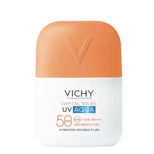 Vichy Capital Soleil UV Aqua Hydrating Invisible Fluid SPF 50+ në format 50 ml ofron mbrojtje shumë të lartë nga dielli me ndjesi të lehtë dhe finish të padukshëm. I përshtatshëm për përdorim të përditshëm.