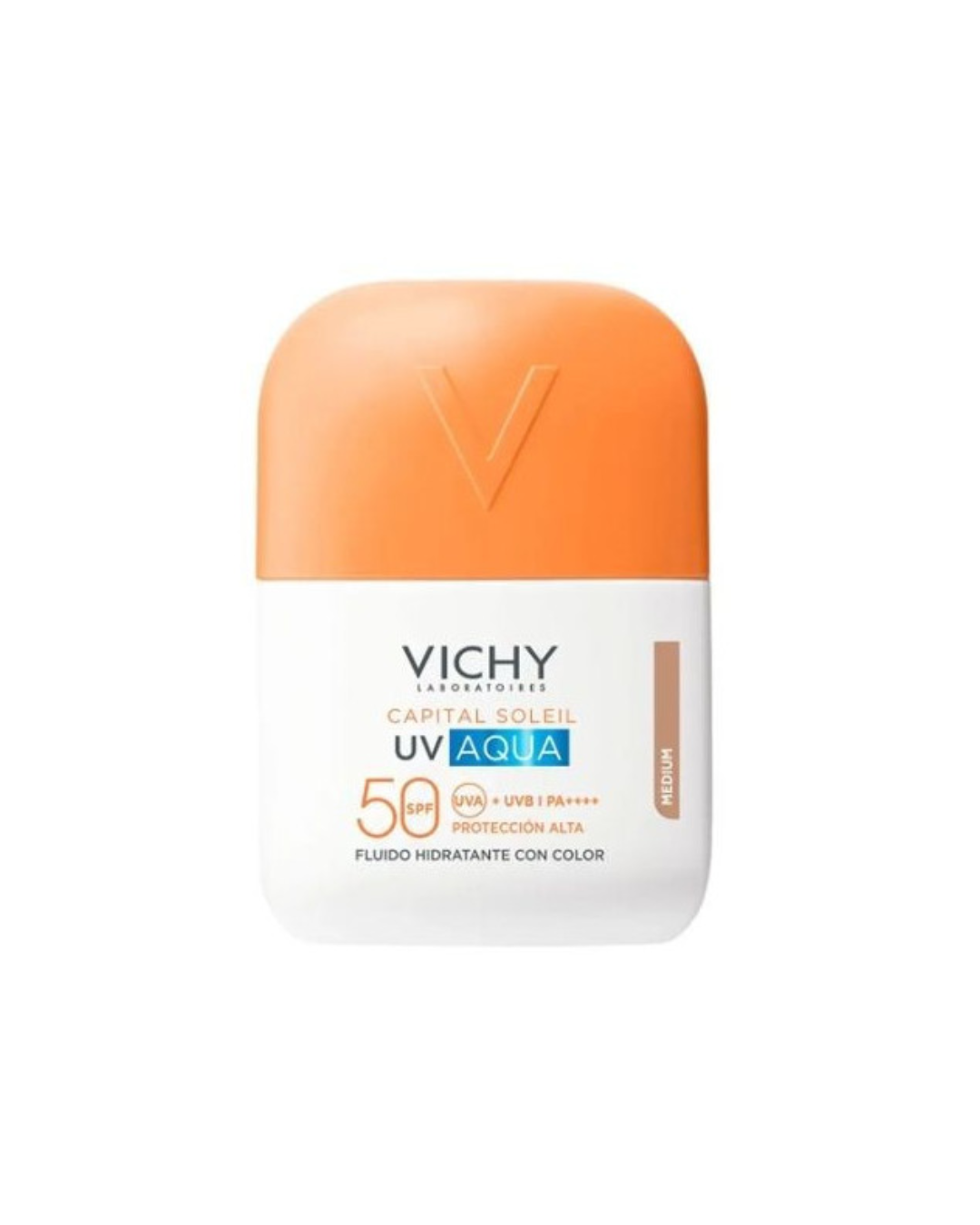 Vichy Capital Soleil UV Aqua Hydrating Invisible Fluid Tinted (Medium) SPF 50+ është një fluid shumë i lehtë me ngjyrë që ndihmon në mbrojtjen e lëkurës nga rrezet UVA/UVB, duke i dhënë një ton të njëtrajtshëm dhe pamje natyrale.